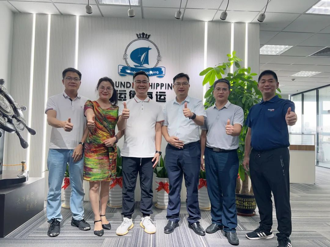 校友会联络组于6月15日前往广州市黄埔区绿地中央广场A3栋17楼拜访了2000届高中校友运德海运物流(广东)有限公司与广东新运德航运有限公司董事长刘煜。刘总业务繁忙,还亲自到楼下迎接我们,公司大堂摆放着一个船轮舵和轮船模型,很好地展示了公司的形象。