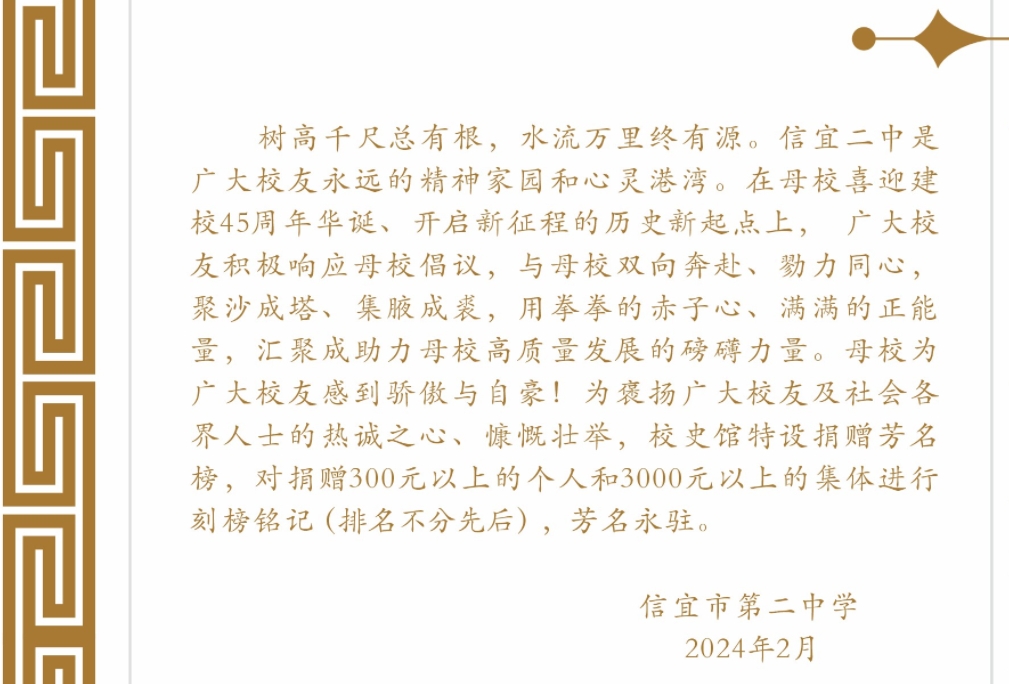 信宜市第二中学四十五周年校庆捐赠倡议书