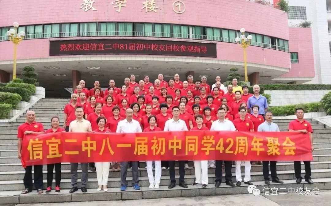 2023年8月5日,1981届初中校友一行人回到母校信宜二中,与校长龙腾云、副校长陈立福、丘福光、胡荣、工会主席韦家嘉等学校领导齐聚校会议室畅叙情谊,共话发展。座谈会上,龙校长代表学校对校友表示热烈的欢迎并发言,81届校友是学校首届初中毕业生,见证了二中的发展历程,毕业42年,仍心系母校,感谢对母校的关心和支持。此外,龙校还就学校现状发展情况、校友会成立情况、校史馆筹建情况、校庆活动向校友作一一介绍。